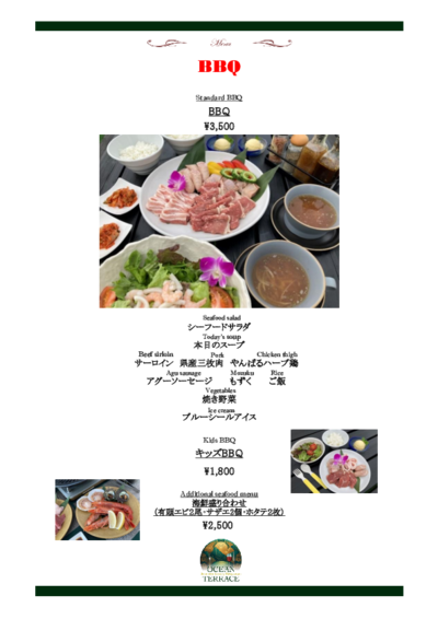 3Fディナーレストラン『OCEAN TERRACE』メニューリニューアル☆彡